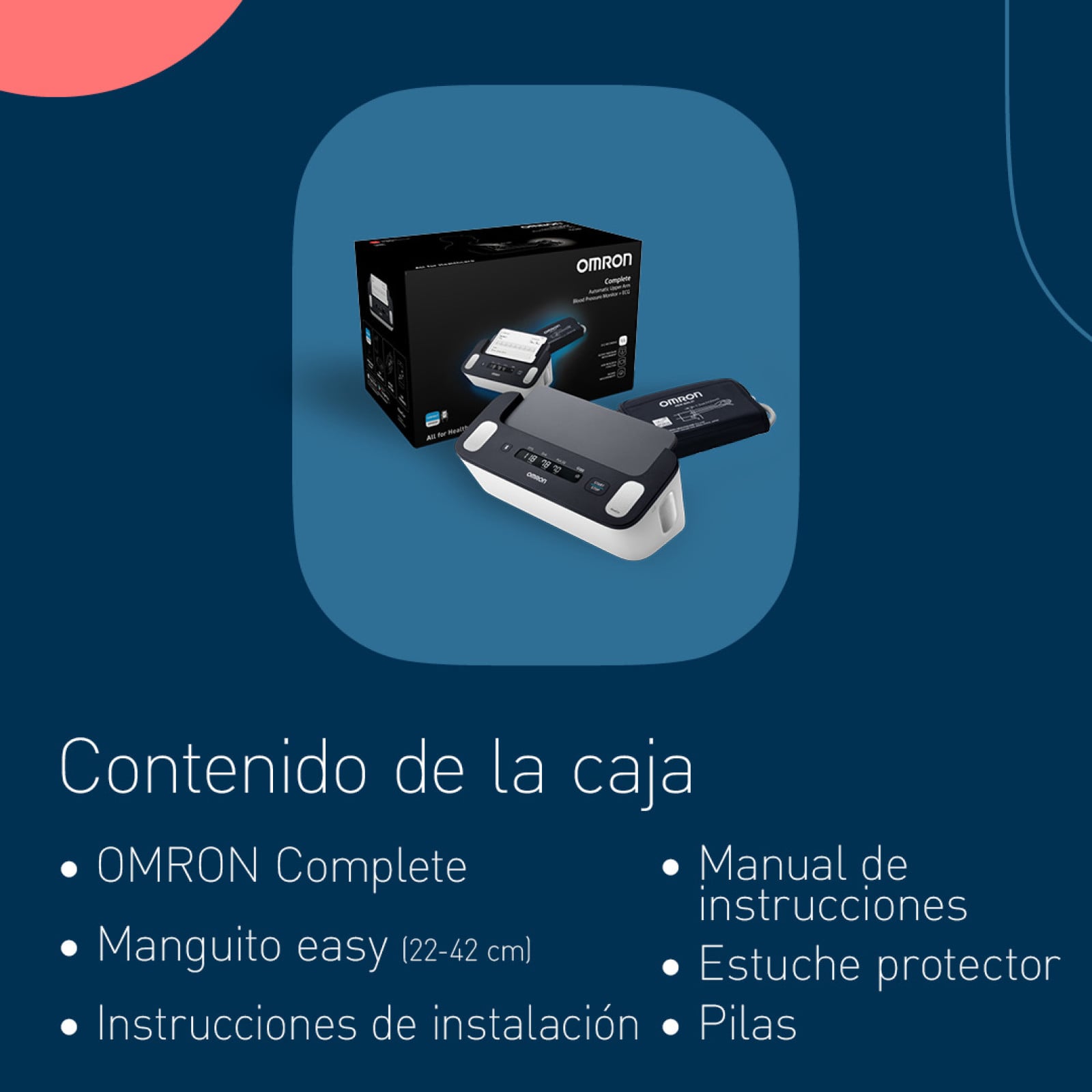 1 monitor de presión arterial y ECG Complete 2 en 1 con manguito Easy de 22-42 cm, 4 pilas AA, manual de instrucciones, estuche.