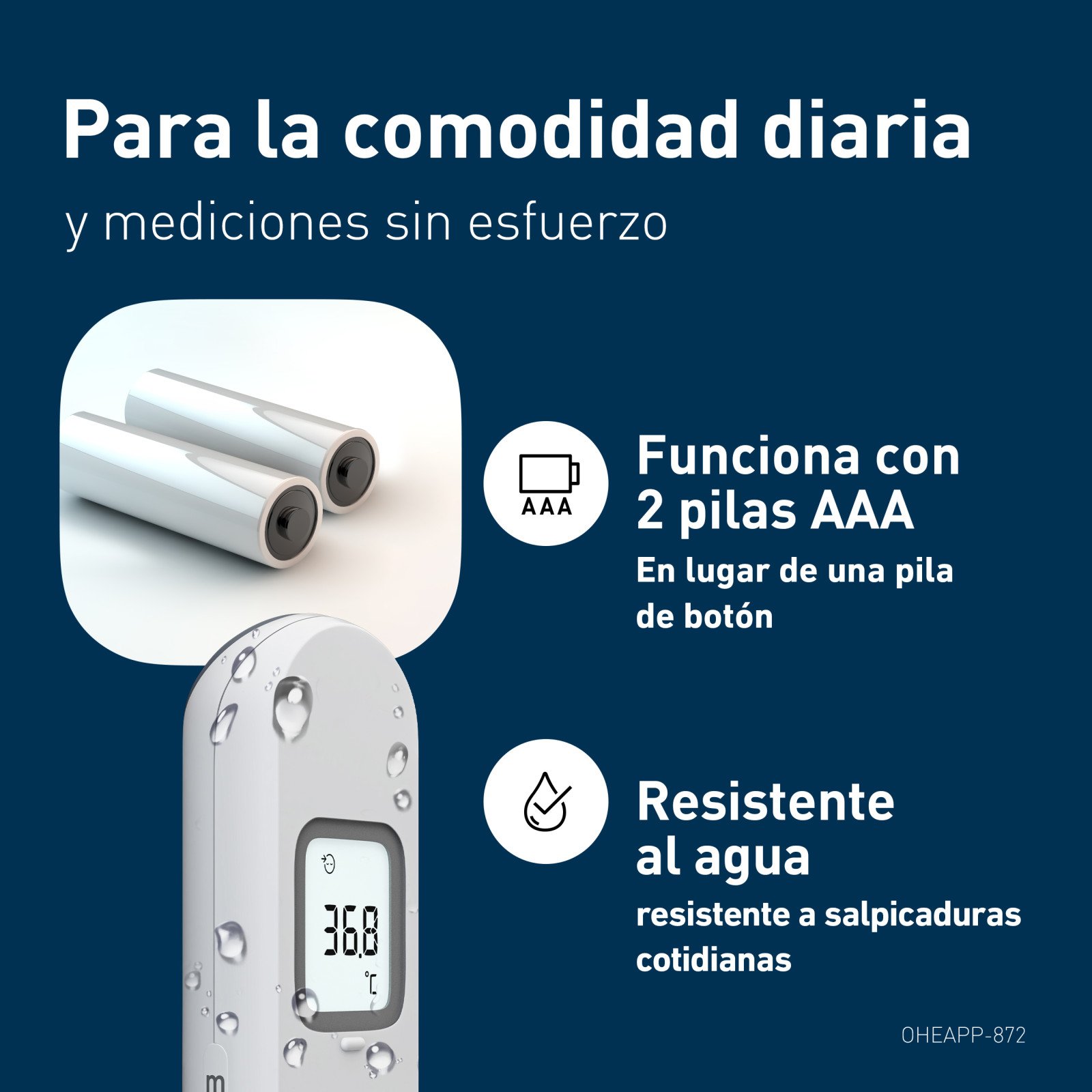 Diseñado para que las familias comprueben la temperatura rápidamente y sin contacto, con precisión y facilidad. Con tecnología avanzada de sensor de distancia, proporciona mediciones rápidas y precisas sin contacto. El sensor de distancia garantiza un posicionamiento correcto para obtener lecturas fiables, y la siguiente medición puede realizarse en 1 segundo. El termómetro es silencioso, fácil de manejar con una mano y está diseñado para un uso rápido.Puede medir la temperatura de la frente y comprobar la temperatura de los líquidos. Guarda las últimas 30 mediciones de temperatura. Funciona con 2 pilas AAA.