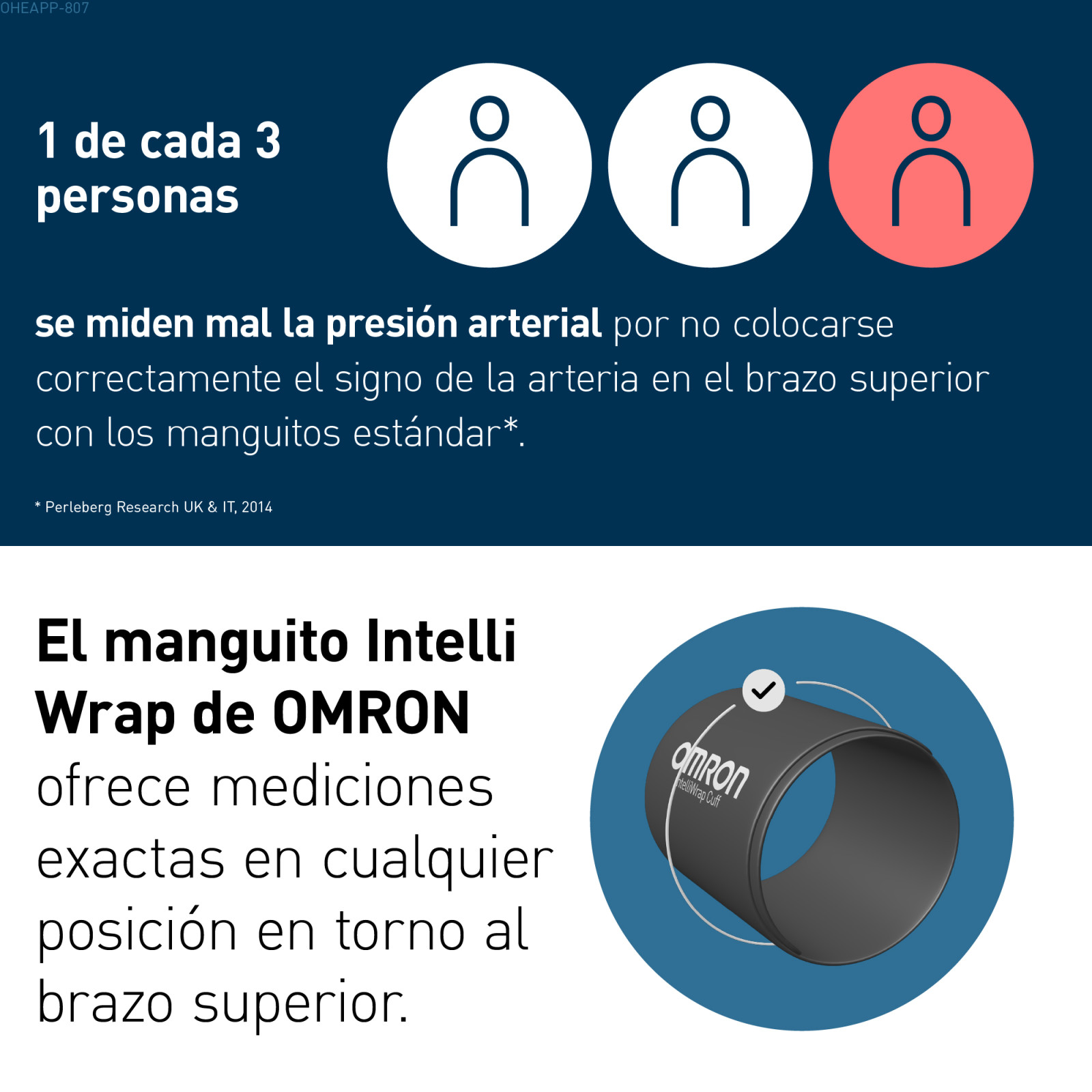 Incluye un manguito Intelli Wrap (22–42 cm), que garantiza mediciones precisas en cualquier posición alrededor del brazo. Esto ayuda a evitar errores comunes de colocación del manguito, lo que lo hace especialmente adecuado para usuarios primerizos.