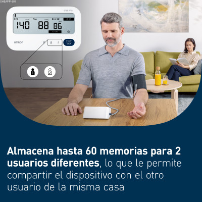 El monitor de presión arterial dispone de memoria para dos usuarios (hasta 60 lecturas cada uno), además de un modo invitado para un uso ocasional. Se incluye un estuche para mayor comodidad, y la garantía de 5 años asegura una tranquilidad duradera.